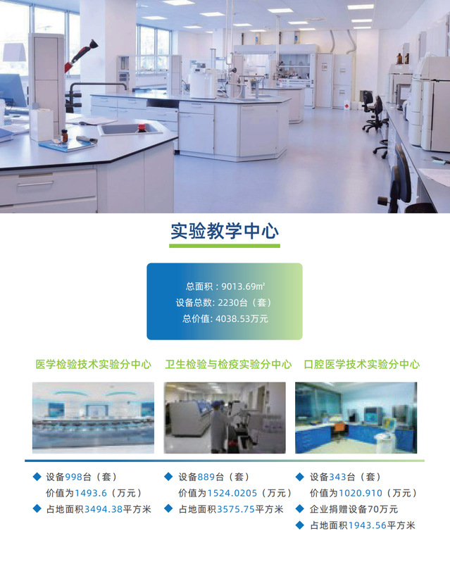 伟德体育伟德体育官方网站为进一步落实应用型、特色性、国际化医学技术专门人才培养目标,打破了几十年来实验室挂靠于教研室的格局,新建了检验检疫实验教学示范中心,形成了新颖的“一体两翼”实验室结构和功能布局。由通用基础实验室组成的“一体”为医学检验技术、卫生检验检疫技术两个本科专业的员工提供基础实验训练;医学检验虚拟仿真实验中心、检验检疫虚拟仿真实验中心为“两翼”,提供专业课程的实验训练,服务于医学检验技术和卫生检验与检疫两个本科专业。