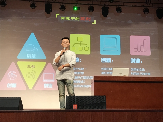 讲座上,胡长沙老师简要介绍公司老员工创新创业的基本情况并动员全体同学参加即将举办的“创新创业小型座谈会”。刘侃老师根据自己创新创业的心得体会,围绕创新创业的方法、结合老员工创新创业比赛“互联网+、挑战杯、创青春、汇创青春”四个大平台,重点阐参与创新创业大赛的重要性,并就组建复合度高、善于协作的团队作了具体指导。刘老师鼓励同学们积极参与大赛、希望大家将参赛作为交流的平台,迸发创新创业热情,学会分享协作,实现自我价值。刘老师幽默的谈吐、新奇的互动方式,博得了在座学子的阵阵掌声。