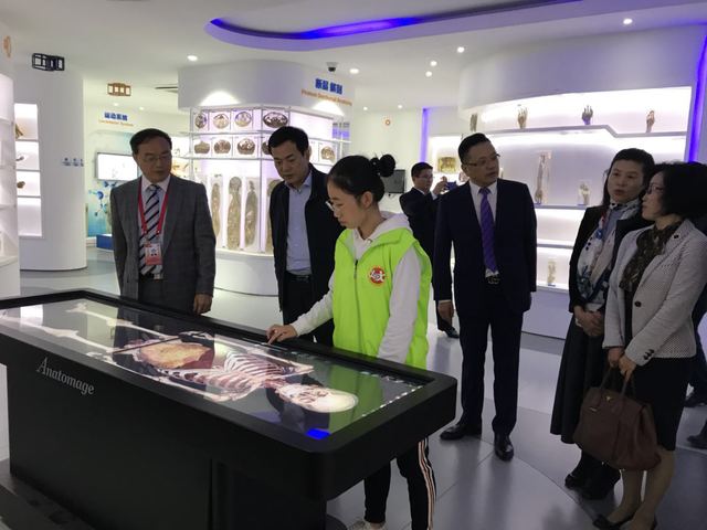 刘金峰司长一行参观了基础医学器官系统互动学习中心、医学检验、卫生检验与检疫虚拟仿真互动实验中心。陈林军副经理对公司实验中心的设计理念、区域功能等作讲解。孙博文、聂志妍等教师对虚拟互动教学、VR教学进行示范,体现了理论与实践、线上与线下、虚拟和现实的三位一体设计理念。随后的座谈会上,黄钢董事长介绍了公司的发展概况和专业布局,黄董事长指出,公司根据国家“健康中国”发展战略和老龄化社会发展需求,聚焦培养高素质医学应用型人才,将应用型、特色性和国际化作为公司发展的目标定位,通过医学影像、医学技术、康复治疗、护理与健康管理等专业的培养,彰显公司办学特色,发挥人才培养的优势和价值。