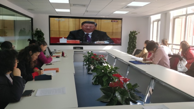 北京时间18日上午,改革开放40周年大会召开,医学技术公司党总支组织全院师生在3号楼平台中心会议室观看改革开放40周年大会直播盛况。