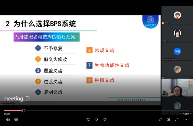 伟德体育伟德体育官方网站口腔医学技术专业教学团队在沈国芳副董事长的带领下,2022年上海市级继续医学教育项目——“生物功能性义齿美学修复”培训班于12月7日顺利开班,培训班为期5天,学员通过考核可获上海市继续教育Ⅰ类学分10分。本次培训以线上教学形式进行,培训班吸引了来自本市及部分外省市的口腔临床医疗人员、口腔修复技术人员、口腔修复相关行业从业人员及口腔领域教育工作者,共计30余人参与在线学习培训。