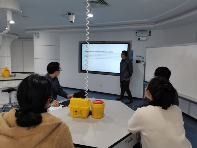 《医学检验专业英语》的磨课章节是《Laboratory Diagnosis》,郭瑞峰老师首先通过听力视频热身,激发员工学习兴趣,设计抢答环节增加员工参与度,课文学习过程中引导员工发现、分析和解决问题,并布置线上任务,配合线下教学,打造全方位的立体学习环境,为自学能力的提升和自主学习打下基础。