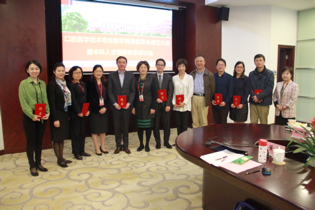 刘敏娟介绍了公司口腔技术专业培养进展,宣读了《口腔技术专业教学指导委员会名单》,聘请上海交通大学口腔医公司副经理郑家伟教授为主任委员。唐红梅、张梅、刘敏娟为教学指导委员会委员颁发了聘书。随后,口腔教研室主任周璟老师汇报了口腔医学技术本科专业建设方案,董晛老师汇报了《口腔修复工艺导论》课程建设思路。各位领导和专家听取汇报,肯定了口腔医学技术本科专业的专业定位与特色,并对课程体系设置、专业人才能力培养如何与行业胜任力相结合、实践教学如何与产业对接等问题提出了宝贵的意见和建议。针对《口腔修复工艺导论》课程,与会专家对课程名称、开课时间、课程内容及教学方法的设计等具体环节都进行了讨论并提供了新思路。