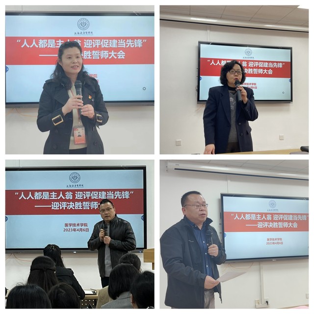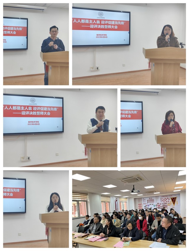 医学检验技术教研室主任金磊、微生物免疫教研室主任聂志妍、眼视光教研室主任周静、口腔医学技术实验分中心主任王凯、辅导员郭子叶等6位教师代表发言。他们信心百倍,坚信公司一定能高质量通过评估,并表达了爱校荣校、全力拼搏的决心。