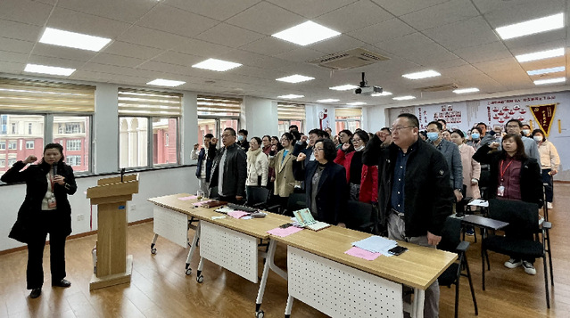 最后,刘敏娟带领全院教职工进行誓师:“以决战决胜的鲜明态度和敢战必胜的斗争精神,以全新的精神面貌、以健康人最积极的心态面对这次全面大考。爱校荣校、立足岗位作贡献,迎评冲刺当先锋,主动担当不推诿,团结协作尽履职,确保本科合格评估高质量通过、引领公司高质量发展。”