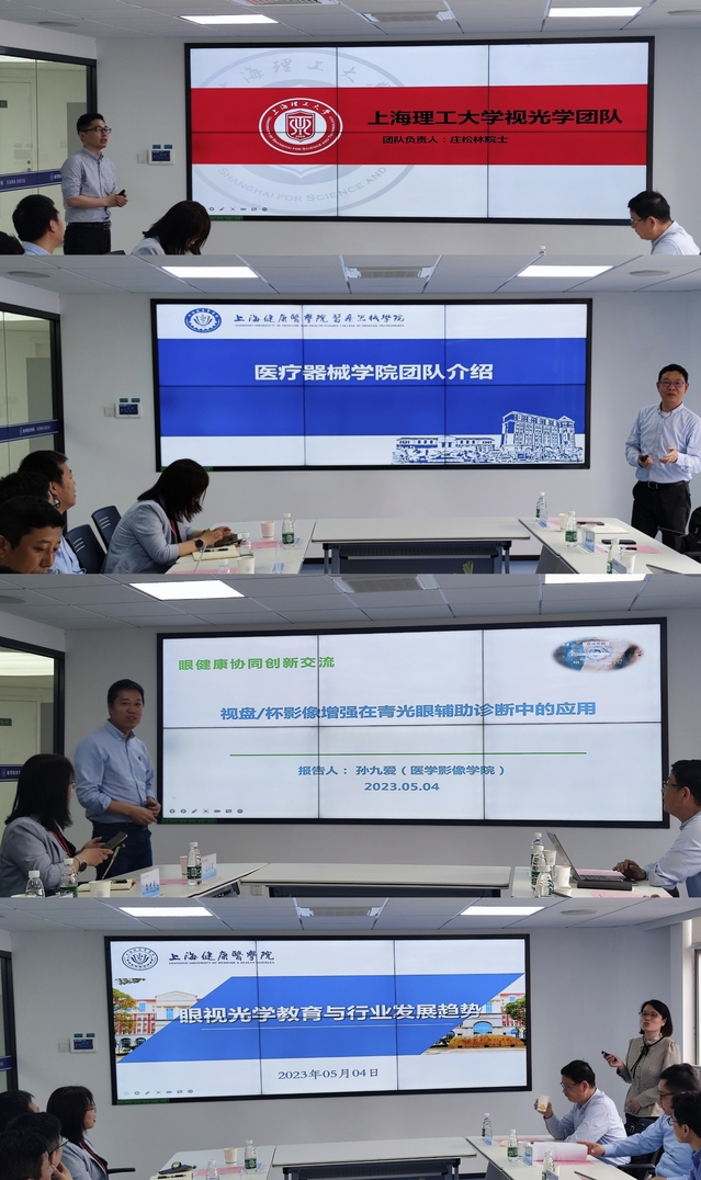 5月4日,由伟德体育伟德体育官方网站医疗器械公司、伟德体育伟德体育官方网站、上海理工大学光电公司联合举办的“眼健康数字诊疗技术协同创新研讨会”在北苑3号楼4楼会议室召开。出席本次研讨会的有医疗器械公司经理杨晖、党总支书记李晓欧、医学技术公司党总支书记、经理刘敏娟、医学影像公司副经理姚旭峰、上海市智能医疗器械与主动健康协同创新中心常务副主任周亮、上海理工大学的金涛、王成、项华中、付东翔以及来自公司医疗器械公司、伟德体育伟德体育官方网站、医学影像公司、护理与健康管理公司的多位专家学者。医疗器械公司临床工程技术学科带头人周传清教授主持会议。