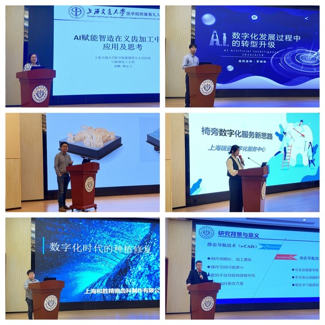 讲座中上海交通大学医公司附属第九人民医院口腔修复工艺科何帆、上海速诚义齿有限公司技术总监罗燕秋、上海慧丰牙科技术有限公司张勇、上海和胜精密齿科制作有限公司质量负责人主管技师雷文华、上海瑞瓷齿科技术有限公司技术总监庄文娟分别以《AI赋能制造在义齿加工中的应用和思考》《数字化发展中的转型升级》《数字化时代的种植修复》《数字化增材技术(3D打印)在口腔修复领域的应用》《椅旁数字化服务新思路》为题,从不同角度与与会人员分享了数字化发展对口腔行业以及从业人员的影响。