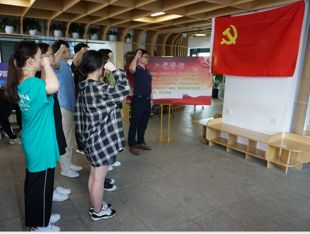 下午13:30,全体成员在码头集合。黄浦码头作为当时赴法勤工俭学的主要出发地,是中国赴法勤工俭学运动的重要纪念地之一。1919年3月至1920年底是赴法勤工俭学高峰期间,周恩来、邓小平、聂荣臻、蔡和森等革命志士,以留法勤工俭学员工的身份从这里登船出发,踏上寻求真理之路。他们接受马克思主义启蒙教育,在中国革命斗争实践中走上与劳动群众相结合的道路,成长为无产阶级的革命战士。在这样一个充满革命意义的码头,全体毕业生党员在公司党建员何双泉老师的带领下面对党旗,庄严宣誓,通过重温入党誓词,进一步坚定共产党员的追寻真理之旅的精神和初心。