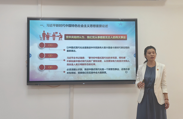 刘敏娟以习近平新时代中国特色社会主义思想为指引,带领全院教师学习中国式现代化建设的关键是人才,要坚持科技是第一生产力、人才是第一资源、创新是第一动力,深入实施科教兴国战略、人才强国战略、创新驱动发展战略。指出健康为中国式现代化的幸福感提供了坚实的保障,人民健康至上是中国式现代化的鲜明底色,健康优先发展是中国式现代化道路的重要内容。