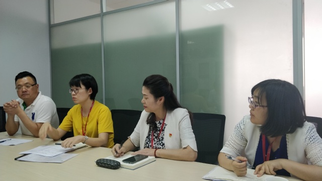 公司党总支书记兼经理刘敏娟详细介绍了公司领导班子建设情况,她指出,2019年上半年,公司通过定期召开党总支委员会和党政联席会落实会议制度;通过董事长奖、师德标兵评选等落实民主集中制;通过集中学习落实《中国共产党重大事项请示报告条例》;通过每月一次专题中心组学习加强领学效应;通过新学期全体教师大会上汇报党风廉政建设计划思路及召开“2019年度党风廉政建设工作计划研讨会”,切实落实“三会三报告”制度;通过落实《党政领导联系群众制度》、定期召开教师座谈会等按计划坚决落实“形式主义、官僚主义整改任务清单”及民主监督责任;召开诚实守信为主题的辅导员主题班会公开课、开展新进教师廉洁谈话落实廉洁教育宣传工作;通过定期召开党支部书记例会,指导进行专题组织生活会等指导下属党支部开展党风廉政建设。