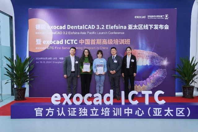 专业教师董晛、李妮参加了为期2天的exocad ICTC中国首期高级培训班,系统学习了德国exocad DentalCAD® 最新3.2 Elefsina版本的核心功能和包括种植杆卡、微笑设计、虚拟咬合架和DICOM预览在内的高级模块。作为全球知名的牙科CAD软件品牌,exocad DentalCAD® 是上海口腔修复工艺行业中应用最广泛的CAD软件之一,沪上不少知名医院的口腔修复体、种植体上部结构均是应用该软件完成设计。在经过严格的理论、实操考核后,两位老师获得了官方认证的培训证书。其中,董晛老师以总分第二的成绩获得考核A+评定。