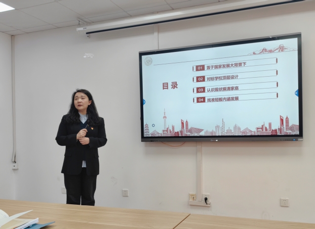 吕晓丽围绕“国家发展大背景、对标公司顶层设计、认识现状摸清家底、找准短板内涵发展”四个方面展开论述,深入学习贯彻习近平总书记关于教育、科技、人才等工作的重要论述,聚焦国家重大战略需求,围绕落实高等教育“两个先行先试”,对标公司顶层设计,认清公司现状,找准公司短板,推动公司内涵式发展。