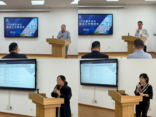 会上,党总支副书记关磊介绍了公司2024届毕业生就业工作进展、当前就业形势及相关专业就业情况,并对后续重点工作进行要点提示。随后,医学检验技术、卫生检验与检疫和口腔医学技术三位专业主任分别对专业当前毕业生就业进展情况及就业重点工作进行交流。医学检验技术专业主任金磊着重强调了就业情况对专业建设的重要性,同时强调了专业教师和论文指导老师对员工就业的推进作用。卫生检验与检疫专业主任李婷婷对近期访企拓岗工作,以及教师与辅导员联动推进就业工作情况进行了汇报。口腔医学技术专业主任董晛分析了目前口腔未就业员工情况,同时整合工作思路,拉动团队力量,党员包干,分工到人。