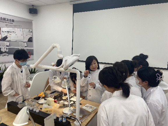 此次校外教学活动是《口腔数字化技术》课程中CAD/CAM实验模块的延续,由瑞瓷齿科技术总监庄文娟作为实验主讲教师、口腔专业实验员王金伟作为辅讲教师,校企双方共同进行实验带教,带教内容主要为“氧化锆修复体的后处理”,其中包括氧化锆固定桥的就位、形态修整以及上釉。员工在实验过程中专注听讲,积极观看教师示教,遇到不解之处能及时提问,同学之间互帮互助,展现了当代老员工应有的学习风貌,受到了企业教师的好评。