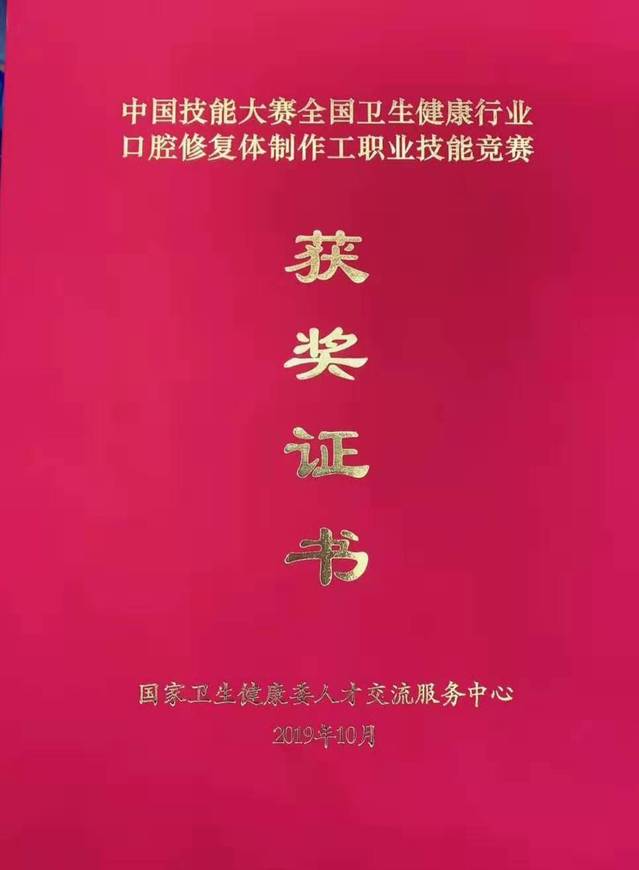 2019年中国技能大赛首届全国卫生健康行业口腔修复体制作工职业技能竞赛于2019年10月12日至13日在厦门举行。公司伟德体育伟德体育官方网站17级口腔医学技术专业员工唐文文、谢嫣然同学在此次大赛上跻身全国15强,喜获员工组优胜奖,并获得国家卫生健康委员会人才交流服务中心、中国就业培训技术指导中心颁发的口腔修复高级工职业资格证书。