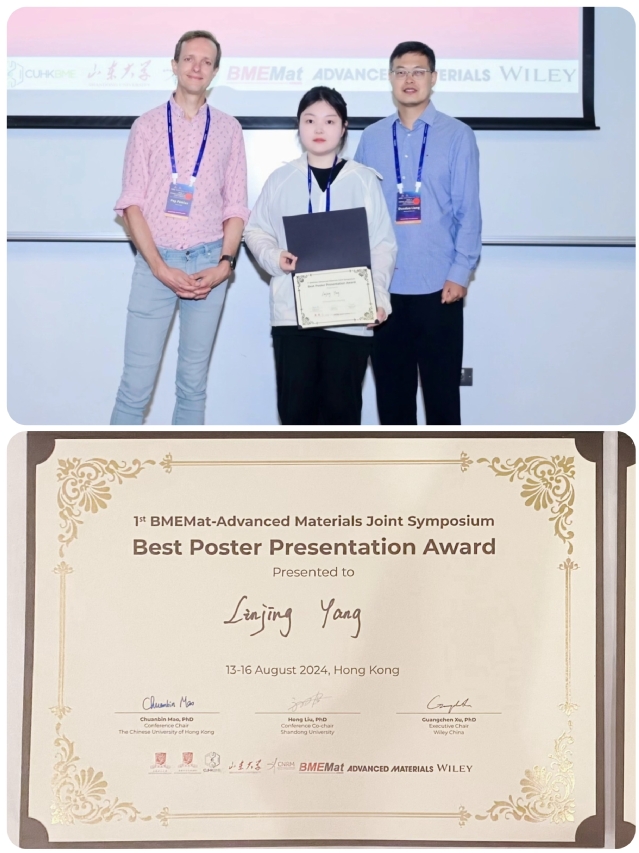 杨林静同学获得最佳壁报展示奖,由顶刊Nature BME和AM主编亲自颁奖