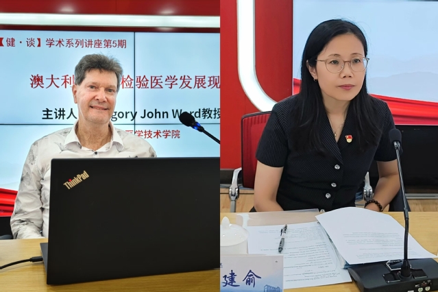 9月19日下午,【健·谈】学术系列讲座第5期在北苑1号楼500室顺利举行。本次讲座由科技处和伟德体育伟德体育官方网站共同举办,澳大利亚昆士兰州SNP独立实验室及参考实验室临床生化/内分泌部主任、大洋洲临床化学和检验医学协会(AACB)主席GREGORY JOHN WARD 教授受邀作了题为“澳大利亚临床检验医学发展现状”的学术讲座。此次讲座由科技处负责人陈建俞主持,集团教师、研究生和本科生120余人线上线下聆听了这场精彩的启发式讲座。