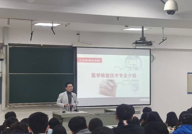 金磊从专业概况、课程体系、毕业要求等五个方面系统地介绍了医学检验技术专业。他希望同学们致力学业,不断提升专业水平,在所学习的专业领域深耕,逐渐形成个人核心竞争力,以更好地实现个人价值和梦想。