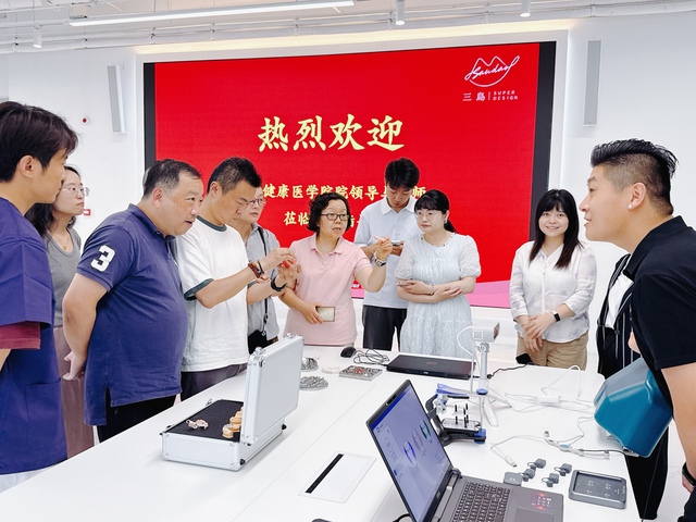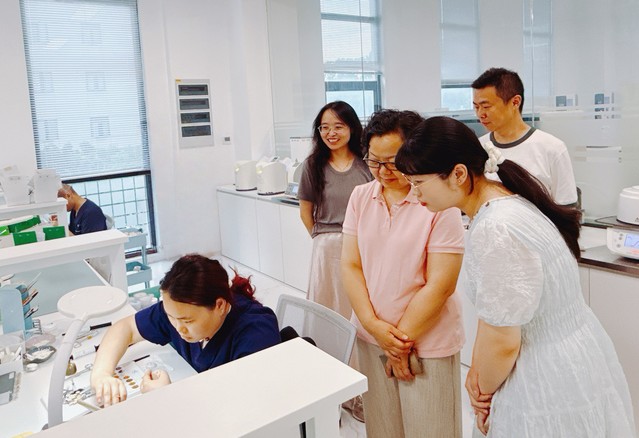 交流会上,三岛义齿展示了行业领先的数字化义齿加工全流程。通过Zebris电子面弓、Teethan数字化咬合分析系统等设备,校企双方就“椅旁扫描→设计→平台协同”的数据闭环教学模式达成共识。参观3D打印技术室时,微米级精度的打印设备和基于大数据的个性化基台质控系统,让教师们直观感受到“数据驱动质控”的行业新标准。陈凤贞副经理强调:“将企业真实案例与前沿技术引入课堂,是破解理论教学滞后性的关键。”