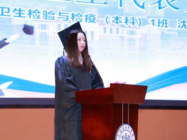 沈书玥代表2025届毕业生向辛勤付出的各位老师致以崇高敬意,表达衷心感谢。她鼓励学弟学妹们要勤于思考钻研,常怀进取之心,不断超越自我,锤炼个人价值,培育远大理想,以深厚扎实的专业知识与技能,在医学领域奋斗拼搏,为“健康中国”建设贡献自己的青春力量。