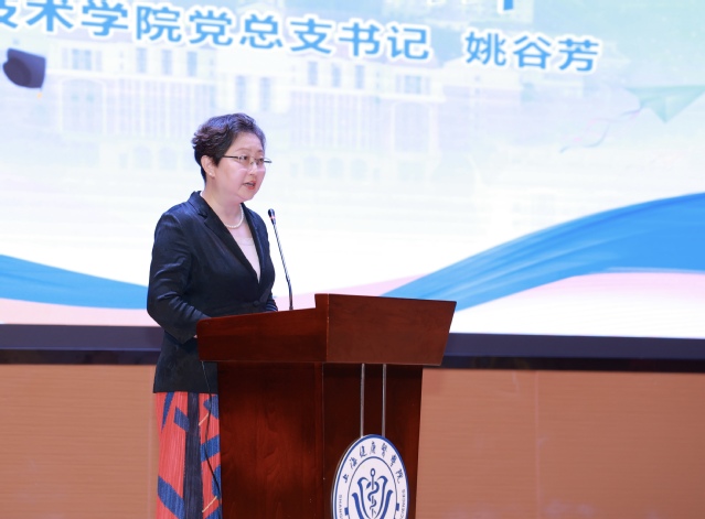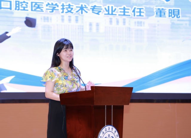 谆谆叮嘱,传递着老师的真挚祝愿。教师代表董晛深情回顾了与同学们相处的校园时光,从青涩入学到携手攻克学业、打磨技能,师生情谊在奋斗中升华。临别之际,她激励各位毕业生要以“精诚”立身,铭记职业使命;以“学习”致远,紧跟行业发展;以“勇气”破局,无畏未来挑战,始终牢记“医道精诚,技高志远”院训,奔赴更加精彩未来!