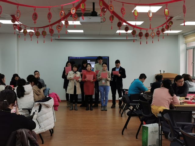 穿插其中的抽奖和游戏环节把团拜会的气氛推到了一个又一个高潮。老师们尽情地欢笑,像无忧无虑的孩童一样。