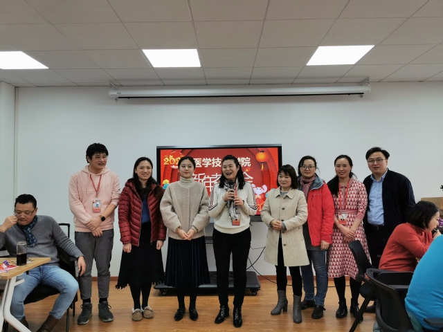 公司领导领导班子献唱的《恭喜恭喜》拉开了团拜会的序幕。熟悉的歌词、欢快的旋律让大家情不自禁地跟着打起了拍子,很多老师还不由自主的一起哼唱起来。辅导员李婉秋老师清唱《绒花》,她清亮的音色,优美的声线,让大家久久沉浸于情深意笃的歌曲旋律之中。杨万龄、周璟、李淑娴、郭子叶、方文娟、刘毅、何双泉七位老师带来了诗朗诵“爱岗敬业、不忘初心、齐心奋力,谱写医技新篇章”。他们用原创诗朗诵的方式回顾了全体教职工一年的付出和收获,展望了公司未来的美丽前景,表达了对教育事业的热爱之前,不忘教书育人初心,齐心努力,和公司、公司共同发展的决心。