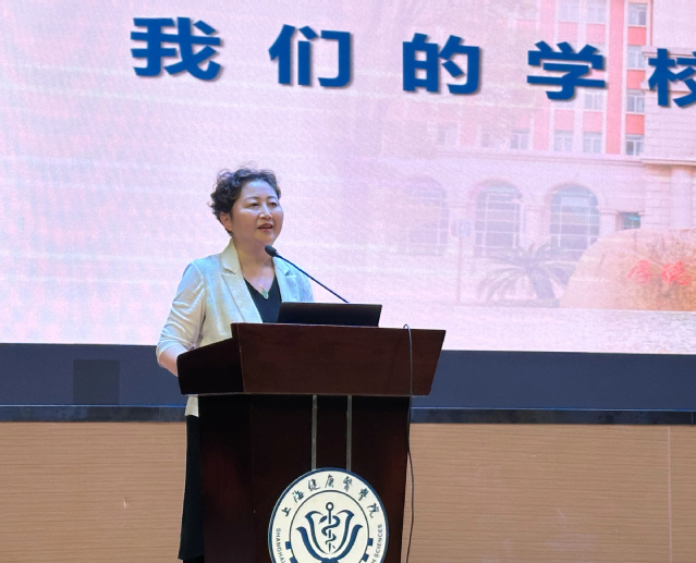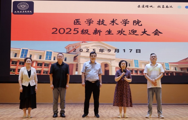 大会伊始,医学技术公司党政班子成员就各自分管的工作做了简要介绍。随后,姚谷芳代表公司全体师生向2025级新同学和新生家长的到来表示热烈欢迎。她从“我们的公司”“我们的公司”“我们的未来”三个方面全面介绍了校史校情和院史院情,对校训、院训的内涵做了系统阐释。最后,她对同学们提出了三点期望:一是要实现思想转化,做“有为”的自己;二是要做好“角色转换”,做自己的“驾驶员”;三是要完成“状态转变”,做自己的“出题人”。