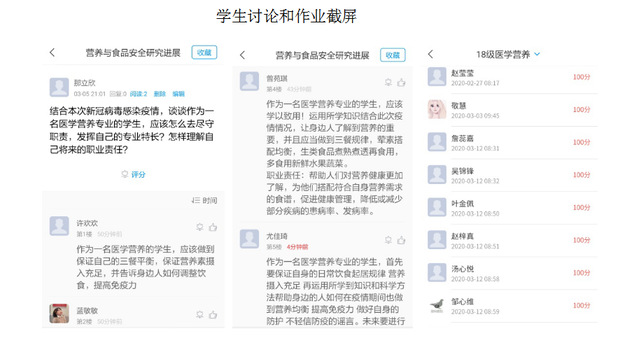 在此次疫情的背景下,授课教师提出营养在其中发挥的作用,介绍疫情中营养和膳食的建议,引导员工发挥专业的特长,正确指导自己和身边人的膳食,从小事做起为抗击疫情做出贡献,同时启迪员工思考和讨论自己将来职业中如果面临此次疫情类似的情况,应该如何去抉择。员工们线上课程反应积极,讨论深刻,认真完成了老师的作业,取得了良好的教学效果。