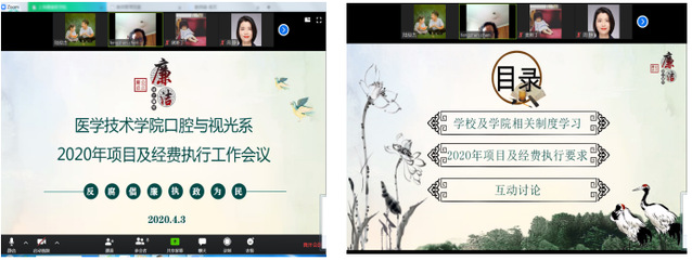 2020年4月3日下午,伟德体育伟德体育官方网站在ZOOM平台上召开口腔与眼视光专业2020年项目及经费执行工作会议。公司副经理陈凤贞,教工一支部党支部书记周璟,公司党总支纪检委员陆俊杰及各项目执行的责任人参加了此次会议。会议由公司副经理陈凤贞主持。