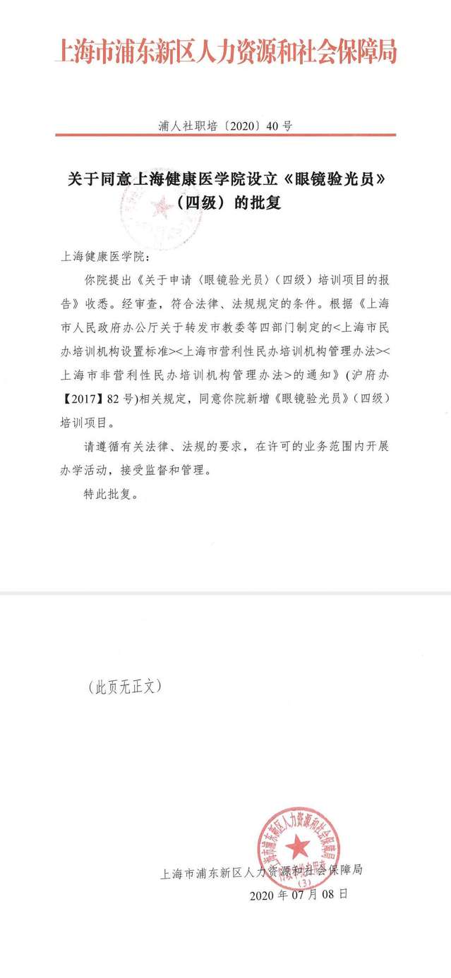 2020年7月14日,上海市浦东新区人力资源和社会保障局批复公司正式获得《眼镜验光员》(四级)培训项目。眼视光专业将在此基础上不断提高专业建设质量和水平,不断提升服务经济社会的能力,培育更多高素质应用型人才!