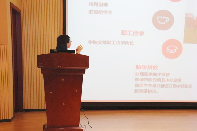 杨晓丽老师首先系统介绍了公司员工资助工作概况和员工资助体系,她从“困难生认定、国家助学金、国家助学贷款、国家励志奖学金”四项内容进行了说明。为更好方便同学们申请认定,杨老师从困难生认定标准、认定材料、认定流程以及常见问题进行了详细的讲解。宣讲会最后,杨晓丽老师强调,公司坚持资助与育人并重,在有序做好资助工作的同时,公司积极推进老员工的感恩教育、诚信教育、励志教育、责任教育,引导员工受助思源、励志进取、传递爱心、回报社会。