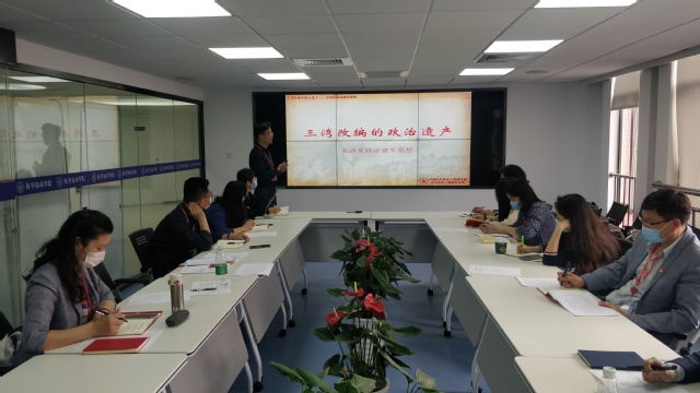 习近平总书记指出:“讲好思政课不仅有‘术’,更要有‘道’”。为提升支部教师的“术”与“道”,党支部牵头组织教师参加课程思政的线上培训、8位老师开展“课程思政说课程”交流活动全院70名教职工参与观摩,展示教师课程思政公司产品成果,发挥典型示范作用,取得了积极成效。