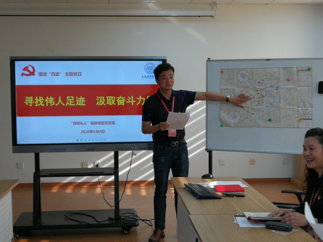 “图说四史”以上海地图、中国地图、世界地图为载体,以地图上历史事件发生的地点为线索,用讲故事的手法对“四史”进行学习。“红色导游”活动中,支部选取了上海红色基地参观学习,党员担任“红色导游”进行一次革命事迹介绍,带领各位“学员”进入情境式学习,提升学习效果。