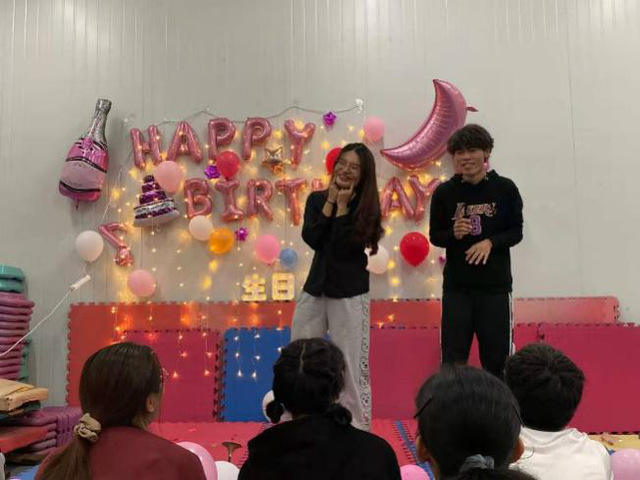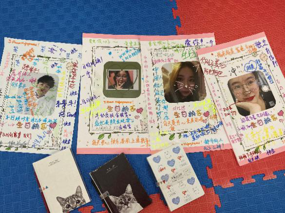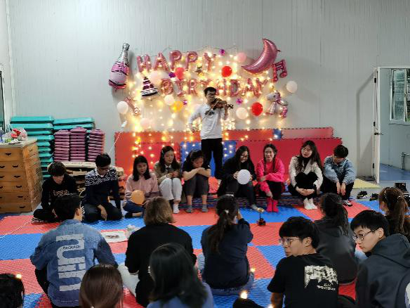 最后,大家为两个班级11月、12月的同学庆祝了集体生日。现场烛光闪闪,所有同学一起为“寿星”们欢唱《生日歌》,并在生日海报上留下各自的祝福语,汪邥昊同学还为大家演奏了小提琴曲。