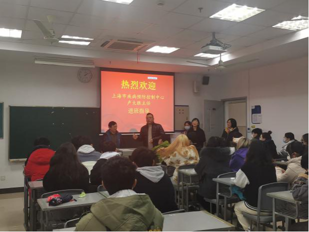 受聘仪式后,20卫检一班班导师陈健结合疫情防控介绍了市疾控中心。上海市疾病预防控制中心是实施市政府卫生防病职能的公共卫生核心专业机构,它集多种功能于一身,分有多个不同的事务所。例如慢性病防治所、公共事务评价所等。陈健教授化繁琐为简易,从公司的疫情防控、工地的环境监测等生活实例出发,使疾控中心的一些具体工作更加通俗易懂。同学们通过这场讲座认识到了疾控中心对于我们生活的重要,也意识到了这个工作的重要性甚至神圣性,大家学习的热情被激发,都想成为能够服务于社会的人才。