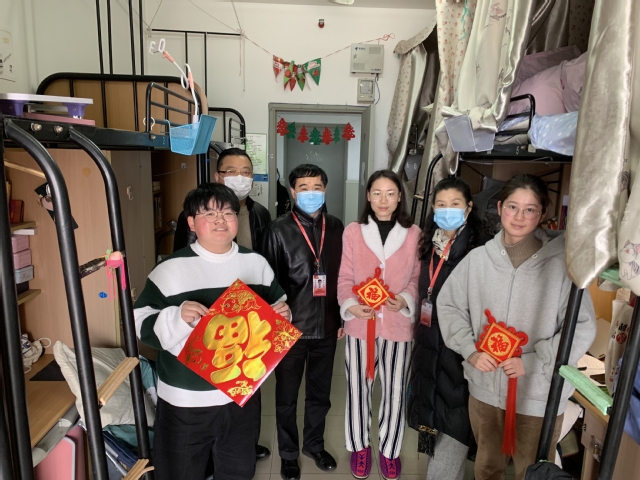 “老家是哪里呀?实习工作怎么样?工作找好了吗?记得做好防护!”李明磊副书记亲切地关怀员工。“感谢你们对公司抗疫工作作出的贡献。不回家过年父母担心吗?请告诉父母,公司会保障好你们的安全和生活,让他们放心!”各位领导、老师询问了留校同学的情况,并嘱托员工要合理安排好实习,加强锻炼,充实假期生活,同时强调严格遵守防疫要求,注意人身安全。各位老师还与同学们一起给宿舍布置上象征吉祥如意的中国结和福字,祝愿大家度过一个祥和温馨的新春假期。