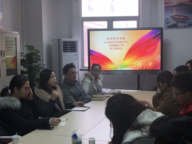 2018年1月8日中午12点,伟德体育伟德体育官方网站2016级本科激励计划座谈会在北苑4513会议室召开。伟德体育伟德体育官方网站副经理金月玲、激励计划团队金磊、聂志妍、孙博文老师以及院办苑国栋、辅导员彭楠老师参与了本次座谈会,2016级医学检验技术本科班的12位本科代表在会上进行了发言。本次会议由金月玲老师主持。