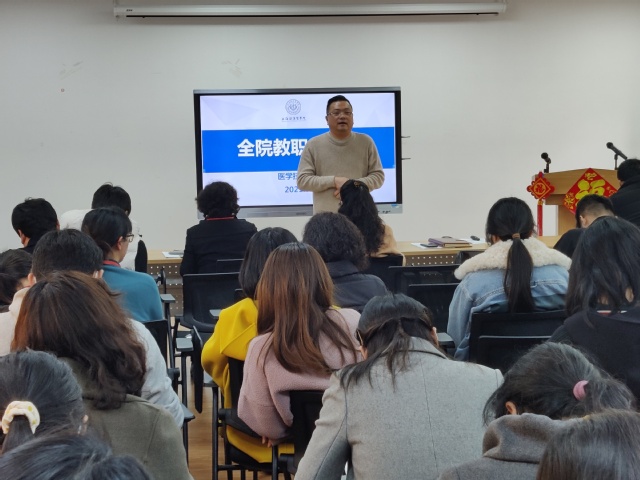 会上,刘敏娟进一步传达了全校工作大会精神。随后,她从“目标任务、主要工作、举措与指标、突破点”等四个方面详细介绍2021年重点工作计划。她强调:以习近平新时代中国特色社会主义思想为指导,秉持“为党育人守初心、为国育才担使命”信念,对标”健康中国”战略,坚定走“内涵发展、合作育人、特色立院、人才强院“之路。