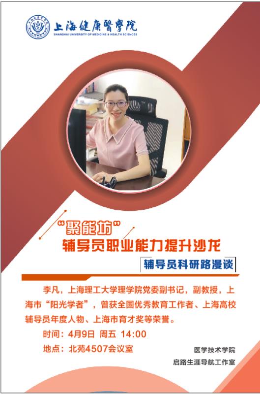 为进一步加强公司辅导员队伍建设,促进辅导员科研能力的提升,4月底伟德体育伟德体育官方网站召开了“聚能坊”辅导员职业能力提升沙龙-“辅导员科研路漫谈”线上主题讲座。上海理工大学理公司党委副书记李凡老师莅临授讲,伟德体育伟德体育官方网站医学技术公司党总支副书记高晓霞老师及公司全体辅导员教师参加了本次讲座。