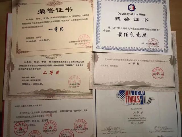 然而刘嘉怡的生活并非始终围绕专业学习,创新是她老员工活中浓墨重彩的一部分。她利用课余时间积极参与各类竞赛活动,在思维的碰撞中迸发创新的火花。她曾在第41届头脑奥林匹克世界总决赛中荣获金奖、在第五届中国“互联网+”老员工创新创业大赛上海赛区中凭借“乙肝快速检测试纸”项目荣获铜奖,以及第四届全国环保知识竞赛优秀奖、2019年上海市老员工头脑奥林匹克创新比赛最佳创意奖等等。