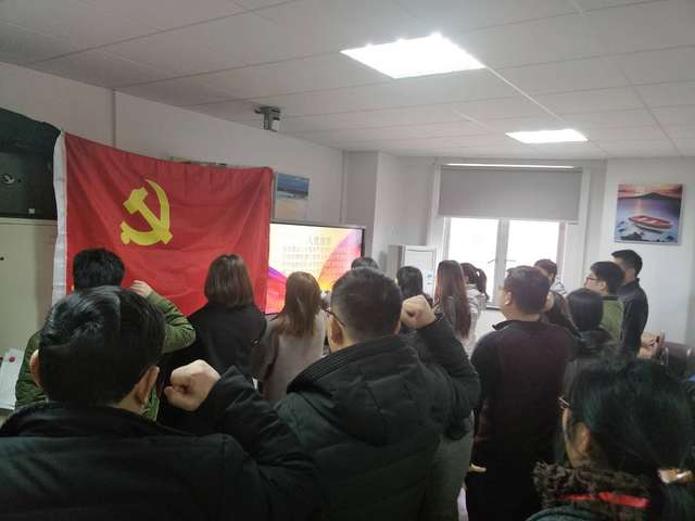 随后,在支部宣传委员杨宇海老师领誓下,2017年11月17日发展为预备党员的12名员工党员及支部教师党员进行了神圣庄严的入党宣誓仪式。然后,结合支部本学期工作计划,各位党员结合自身的工作、实习情况,交流了学习十九大精神的相关体会,并且对支部工作计划提出了建设性的意见。