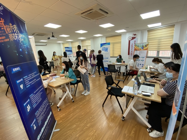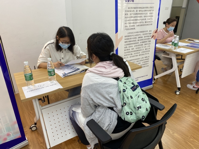 此次招聘会有上海金域医学检验所有限公司、基因科技(上海)股份有限公司、迪安诊断技术集团股份有限公司等12家公司到场,共对31个岗位进行招聘,需求人数122人。招聘会现场井然有条,2021届毕业生们带着精心准备的简历早早到场,在了解各招聘企业的岗位信息之后,与企业招聘相关负责人深入咨询,向心仪企业介绍自己的经验与理想目标,以期获得用人单位的青睐。在整个交谈过程中,企业招聘相关负责人详细阐述相关岗位的详细信息,助力面试者进一步确定自己的方向,企业相关负责人还对应聘者现在水平的评估与未来规划的提问。