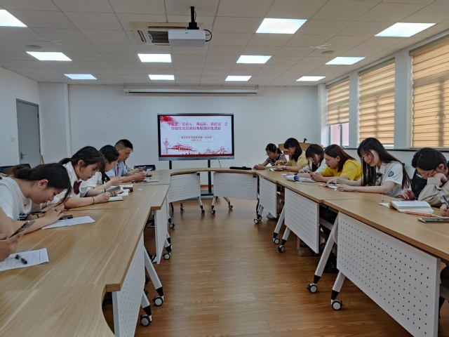 首先是党史专题学习。全体党员在支部书记胡长沙老师、员工党员陆艳梅、钟晓文的带领下以《毛泽东邓小平江泽民胡锦涛关于中国共产党历史论述摘编》为原本进行专题学习。胡长沙结合最近人民日报“宣言”发表的两篇社论《社会主义没有辜负中国》和《中国没有辜负社会主义》,带领支部党员重点学习专著中毛泽东的相关重要论述,强调““我们研究中国就要拿中国做中心,要坐在中国的身上研究世界的东西”。陆艳梅结合中国改革开放总设计师邓小平的“三步走”战略,带领大家回顾了改革开放的重要历程,她认为要用发展的眼光对待马克思主义,青年要学点历史,坚持党的基本路线一百年不动摇。钟晓文结合胡锦涛《在西柏坡学习考察时的讲话》一文,重点向支部党员讲解了“两个务必”形成的历史背景及对于毕业生党员的现实意义。