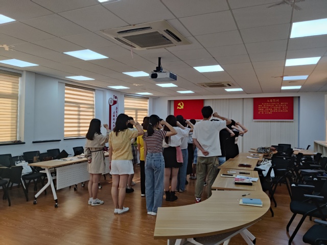最后,全体党员在何双泉老师带领下,重温入党誓词。面对鲜红的党旗,全体党员用铿锵有力的声音,在党旗下庄严宣誓,通过重温入党誓词的方式,重忆入党初心。