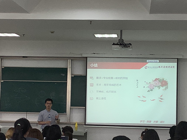 讲座在同学们意犹未尽的掌声中来到了尾声。教研室主任周静老师做了讲座的总结,对郑克医生给同学们带来的精彩授课表示感谢。同学们也一致表示此次讲座受益匪浅,弥足珍贵,都有所收获,有所成长。