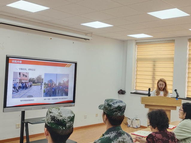 会议开始,首先由2020级口腔医学技术(本科)2班班长史懿婷同学进行半军事化管理的总结汇报。史懿婷同学从半军事化管理的背景意义、训练内容、收获及总结展望四个部分,采用图文结合的方式进行汇报。一年以来的半军事化管理不仅帮助同学们强健了体魄,也监督协助着同学们逐渐养成良好的生活习惯,自律的学习习惯,使同学们收获多多,感触多多。