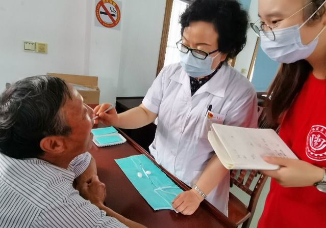 最后,团队对相关村民进行个案研究,乔琪、马劼旻分别对社区工作者与居民代表进行了深度访谈,对居民口腔保健知识的需求和社区方能够提供的相关服务都有了更深刻的了解。其余团队成员也随即通过察看本地的医疗卫生设施环境条件,进一步了解的当地口腔卫生保健的供给需求。
