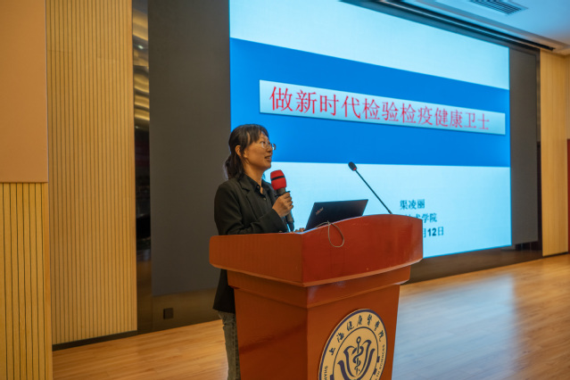 渠凌丽为新生详细的介绍了专业相关知识,公司致力于培养一线应用型专业人才,毕业生从事的工作岗位范围广泛,需要自身具备良好的职业素养和人文素养,拥有较高的综合素质,较强的实践能力,较好的适应性和突发公共卫生事件应急能力,同时也要具备现代检验检疫能力、创新能力。渠老师强调,想要学好专业需要以专业的角度去关注实时动态和未来发展,公司在校内设立了检验与检疫实验教学互动中心,员工可以零距离接触职业,模拟卫生检验操作流程,加强自身的实践能力。渠老师也建议同学们学会自主学习,能够充分利用每一分钟,勤于思考,敢于应对挑战,度过美好成功的老员工活。