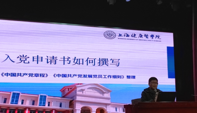 何双泉老师以“如何撰写入党申请书”为主题,主要从发展党员的基本程序、撰写入党申请书的步骤、常见的问题进行了详细的介绍。他鼓励同学们志存高远,脚踏实地,坚定理想信念,在学思践悟中牢记初心使命,在知行合一中主动担当作为,以实际行动做新时代的“健康人”。